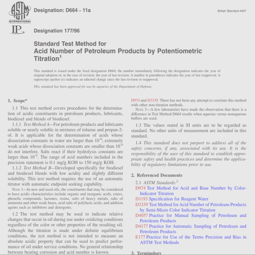 ASTM D664 REV A-Acid Number of Petroleum Products by Potentiometric