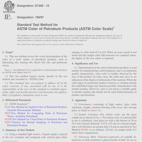 ASTM D1500-ASTM Color of Petroleum Products (ASTM Color Scale)