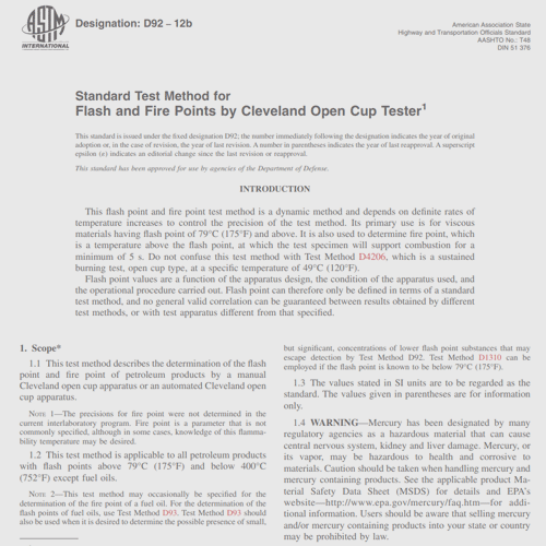 ASTM D92 REV B-Flash and Fire Points by Cleveland Open Cup Tester