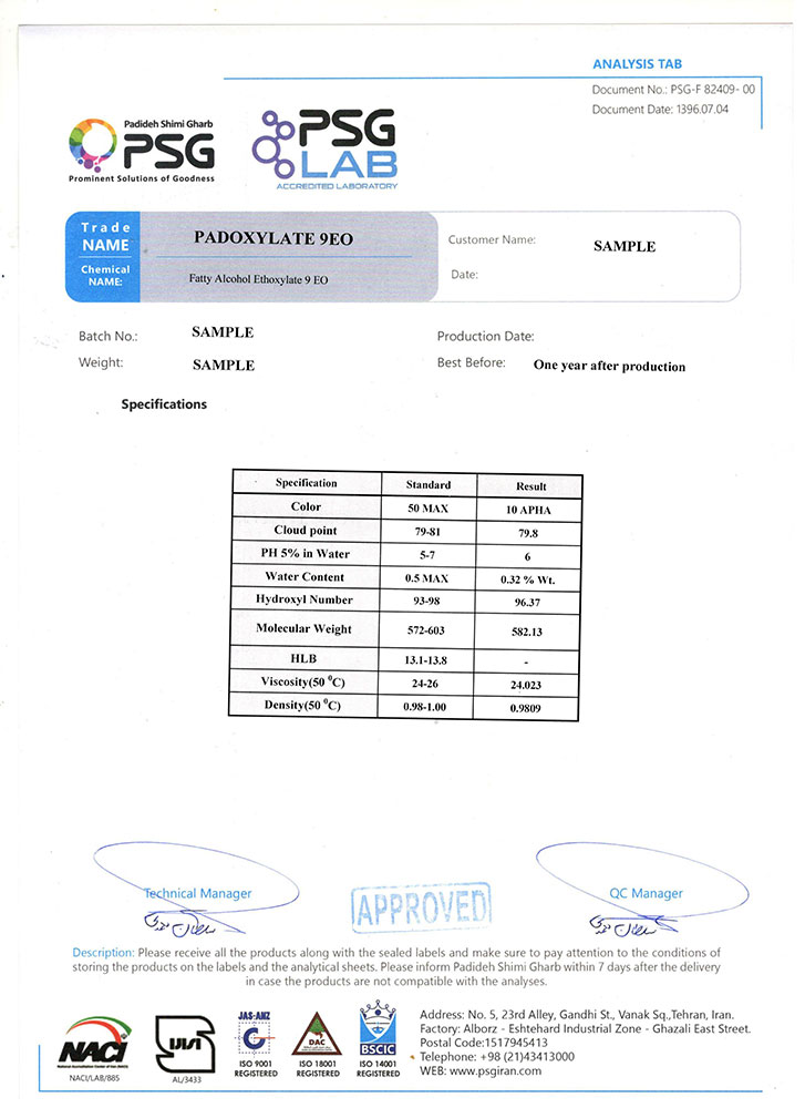 9 mol etoksile lauril alkol PADOXYLATE-9EO